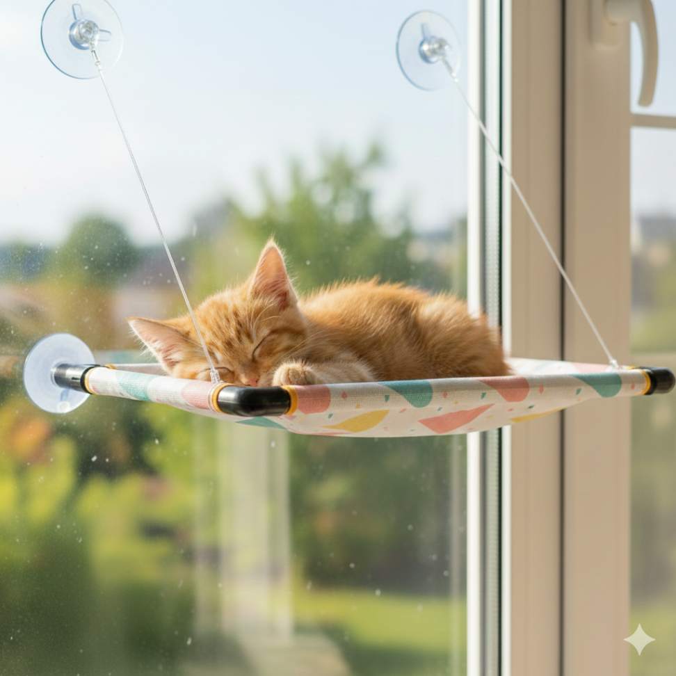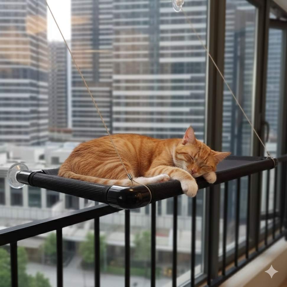 Um espaço elevado, confortável e seguro que permite ao seu gato descansar, tomar sol e observar tudo ao redor.