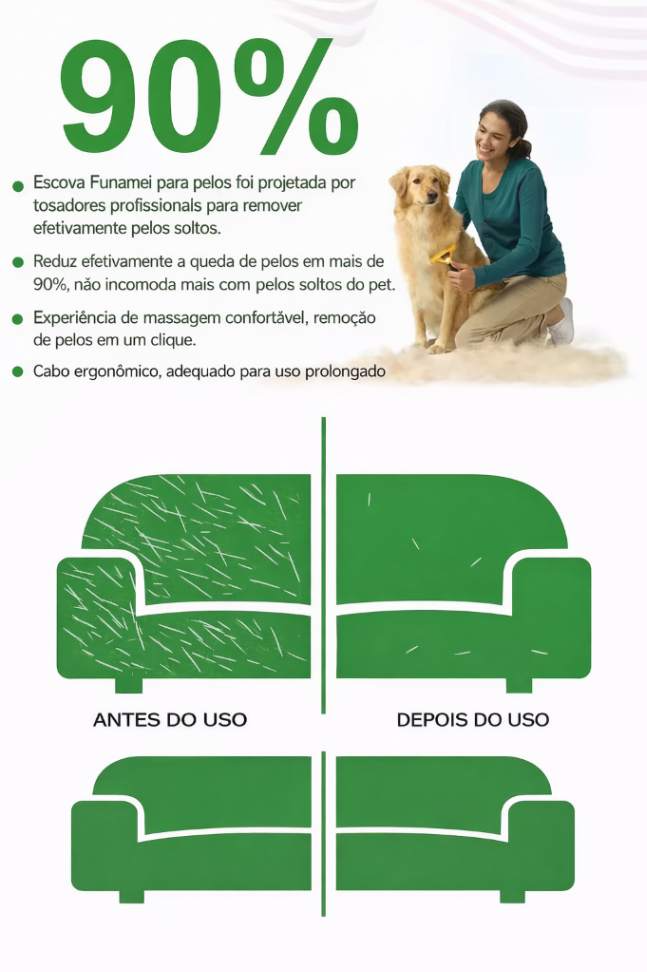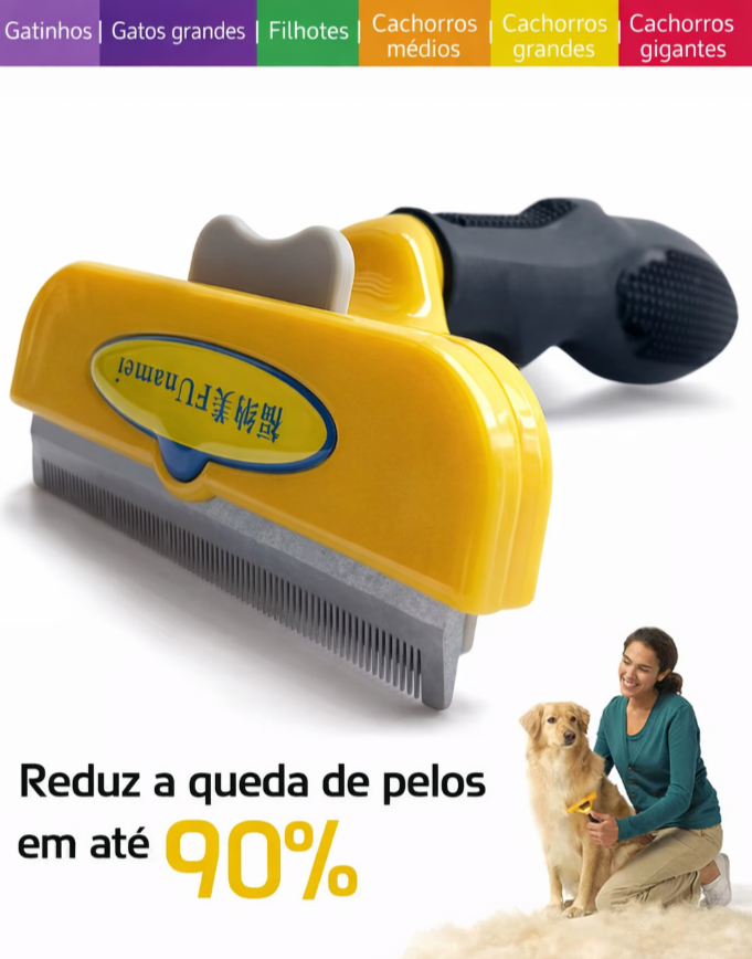 Uma solução prática que remove o subpêlo solto, reduz a queda e deixa a pelagem do seu pet muito mais saudável.