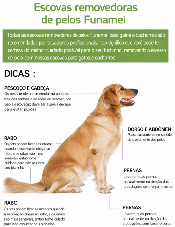 Isso permite remover muito mais pelos em cada passada, com total conforto para o pet.